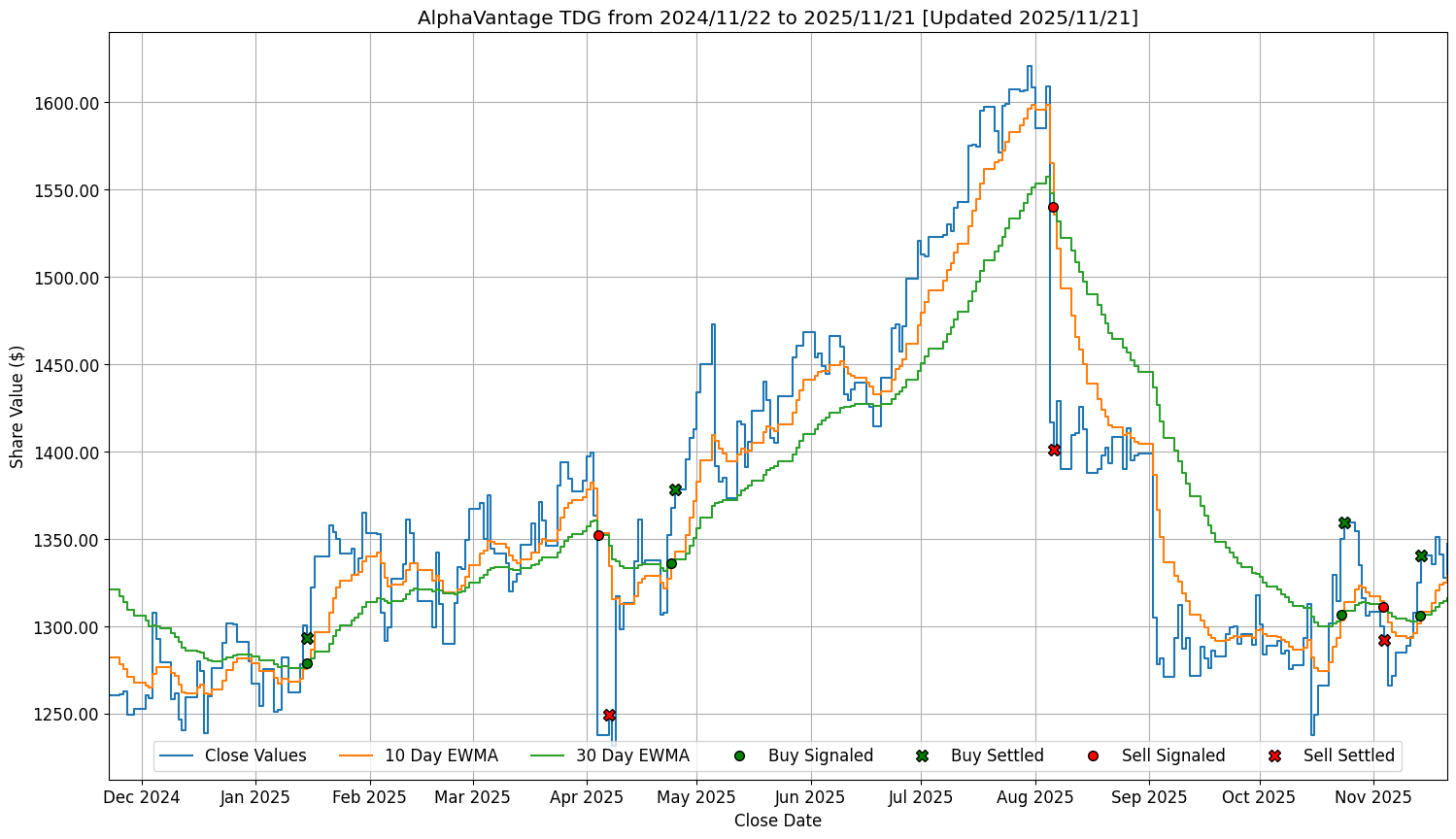 Thank you for using Alpha Vantage! Please consider spreading out your free API requests more sparingly (1 request per second). You may subscribe to any of the premium plans at https://www.alphavantage.co/premium/ to lift the free key rate limit (25 requests per day), raise the per-second burst limit, and instantly unlock all premium endpoints Could not retrieve data from remote server for TDG.